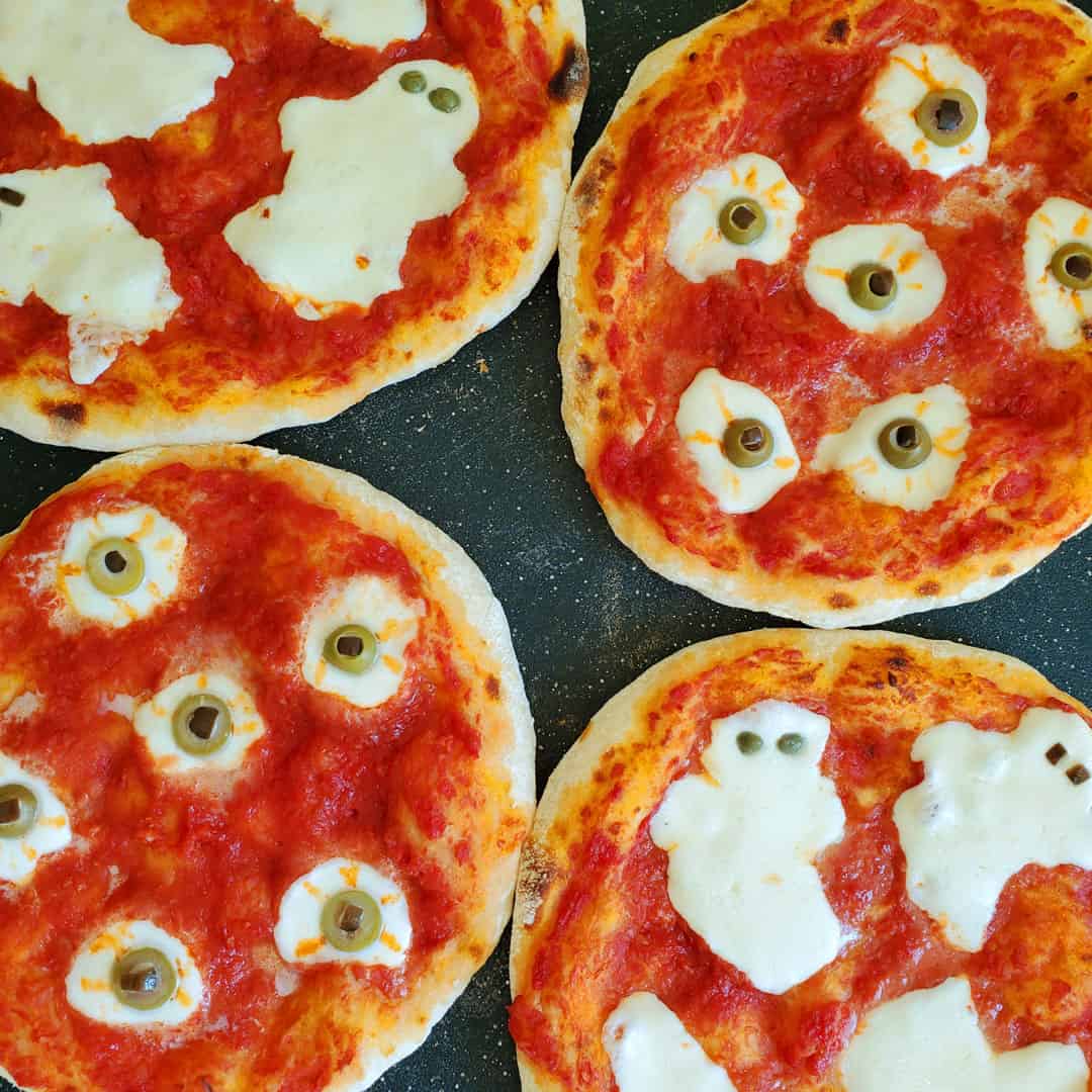 - Spooky Ghost and Eyeball Halloween Pizzas